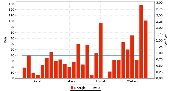 Energie = 568,56 kWh (12,89 kWh/kWp) | CO2-Vermeidung = 341,13 kg