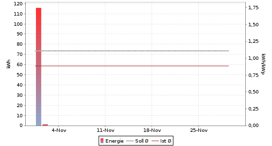 Energie = 57.815,63 kWh (872,82 kWh/kWp) | Vergütung = 18.581,94 EUR | CO2-Vermeidung = 34.689,38 kg