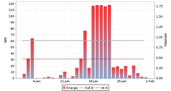 Energie = 175,51 kWh (2,65 kWh/kWp) | Vergütung = 56,41 EUR | CO2-Vermeidung = 105,30 kg
