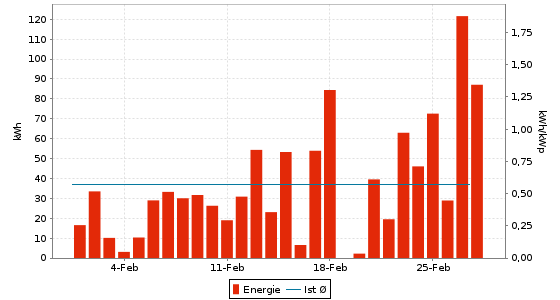 Energie = 531,08 kWh (8,20 kWh/kWp) | CO2-Vermeidung = 318,65 kg